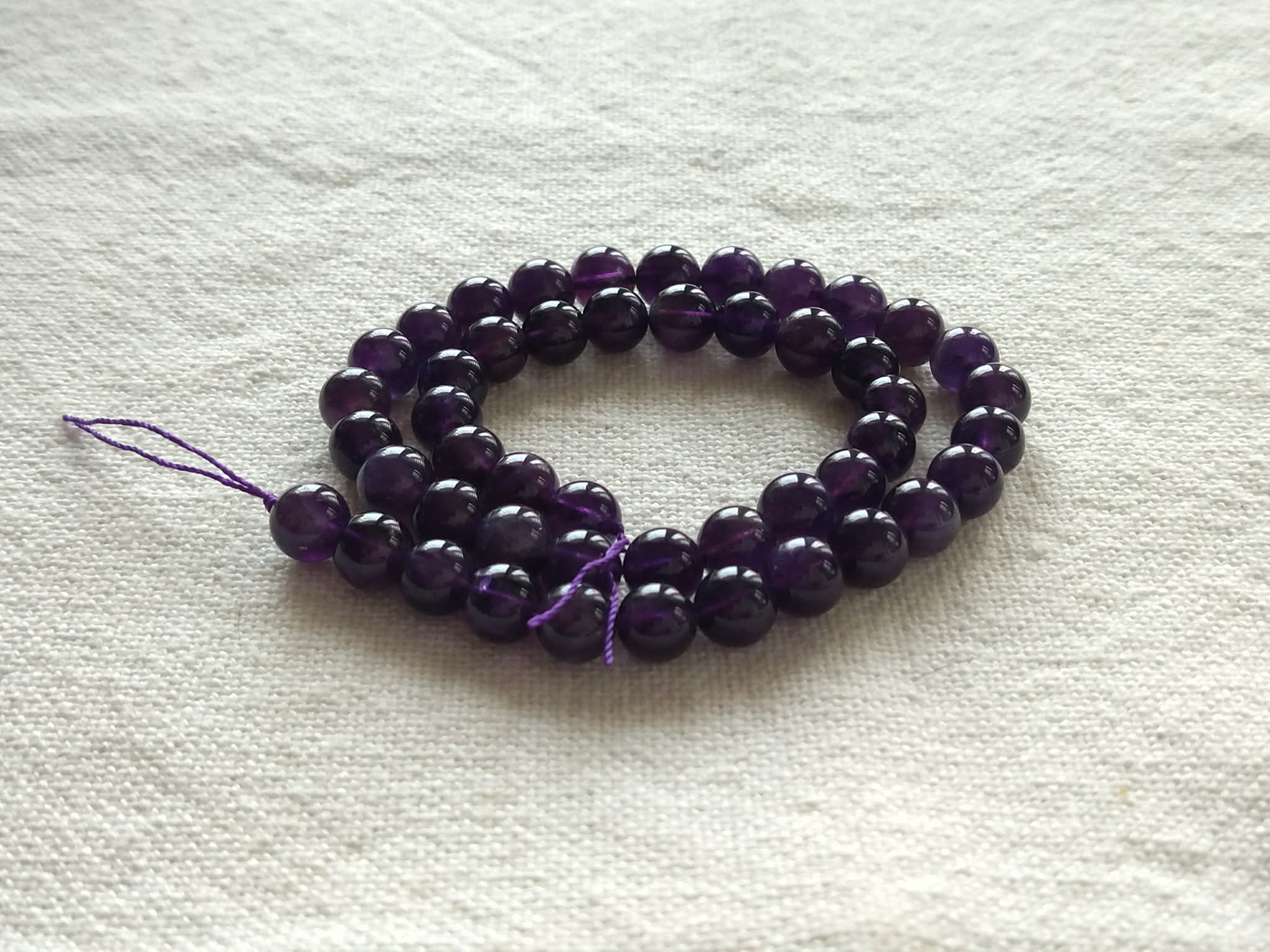 Ez az ametiszt ásványgyöngy kiváló minőségű alapanyag ékszerkészítéshez. Természetes megjelenése és egységes kidolgozása miatt ideális karkötők, nyakláncok és egyedi kézműves ékszerek készítéséhez.