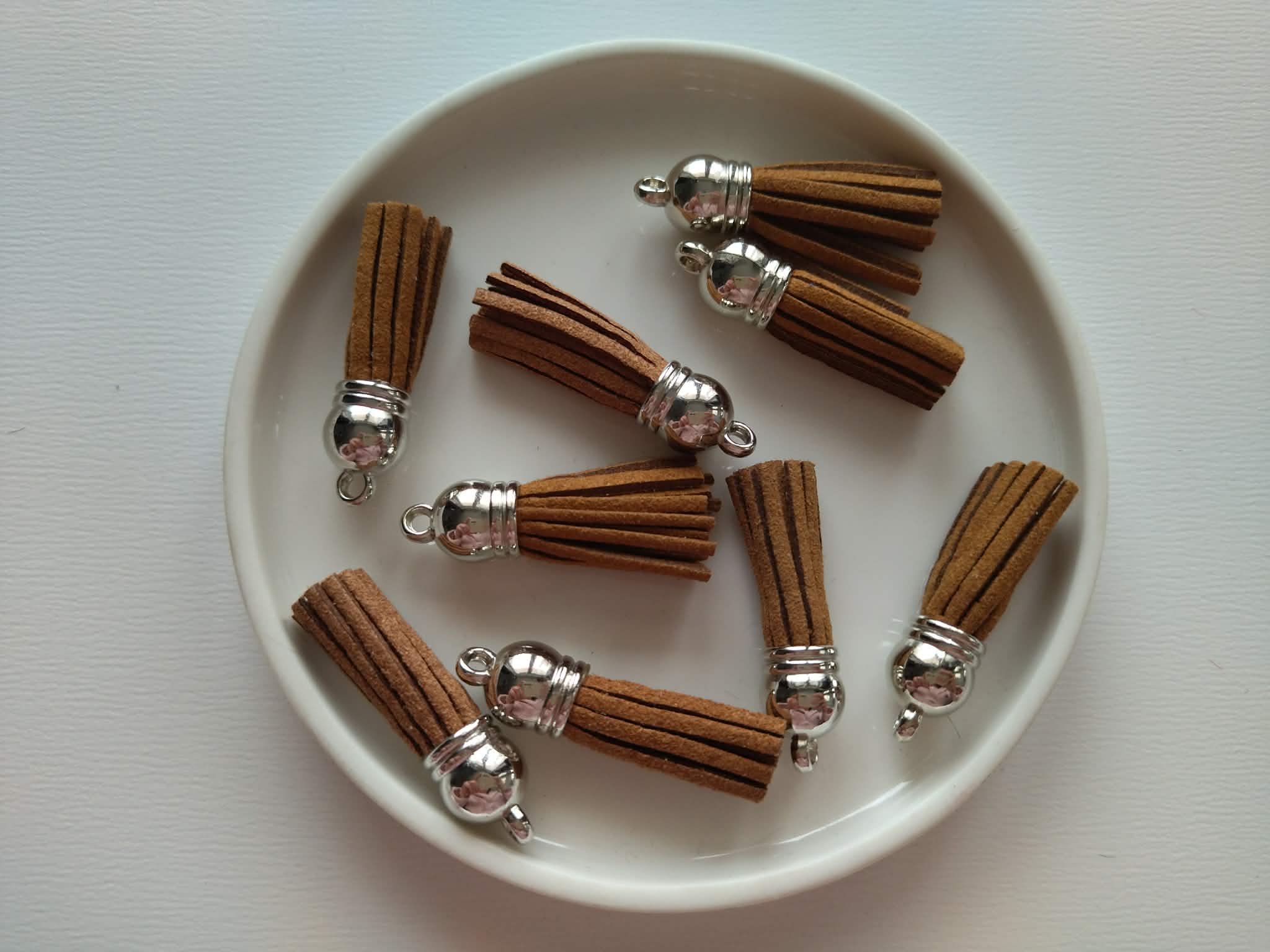 Ez a bőrszálas bojt stílusos és sokoldalú kiegészítő, amely különleges megjelenést ad az egyedi, kézzel készített alkotásoknak. Ideális választás ékszerkészítéshez, kulcstartókhoz, táskák díszítéséhez vagy kreatív DIY projektekhez.
